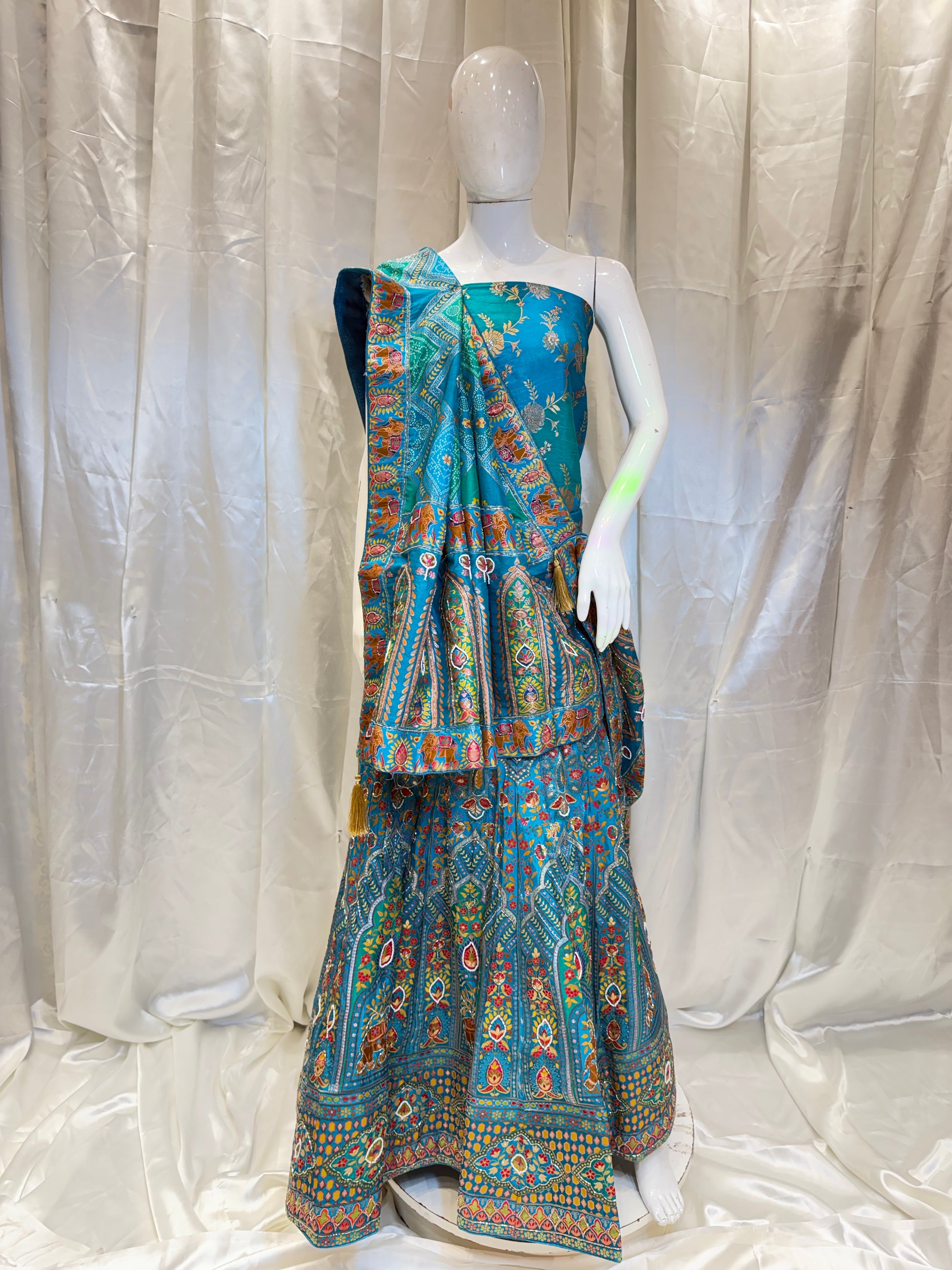 Style: Traditional lehenga with matching blouse and dupatta