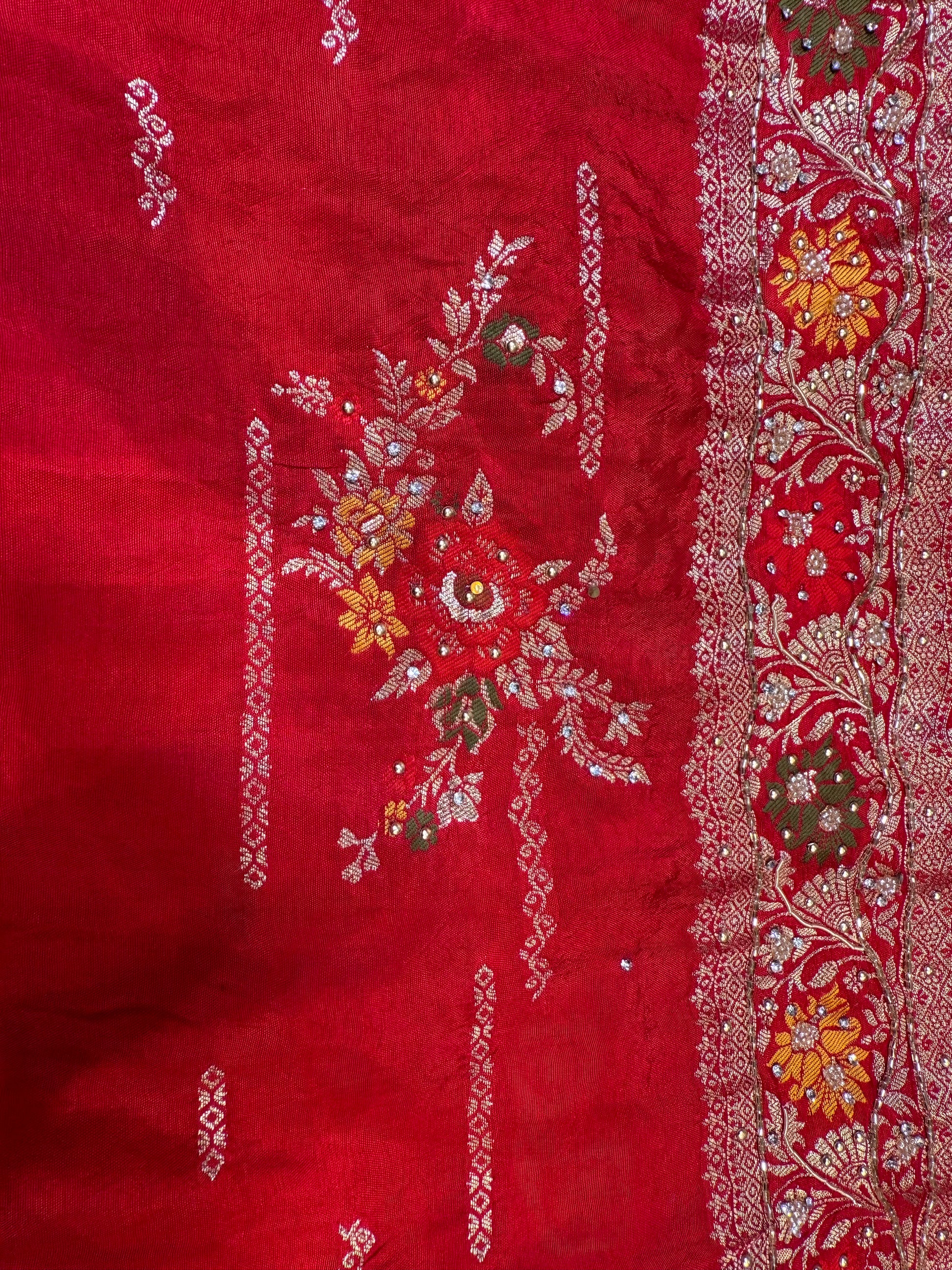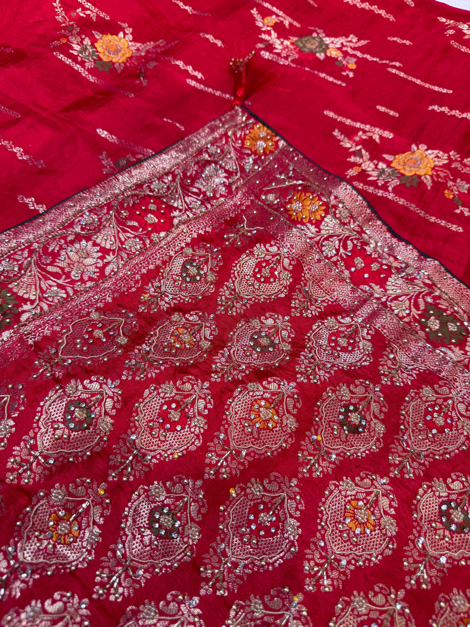 Make a royal statement with this stunning Bridal Silk Saree in a rich Rani pink shade. The luxurious fabric and elegant finish make it a perfect pick for wedding ceremonies and grand celebrations.