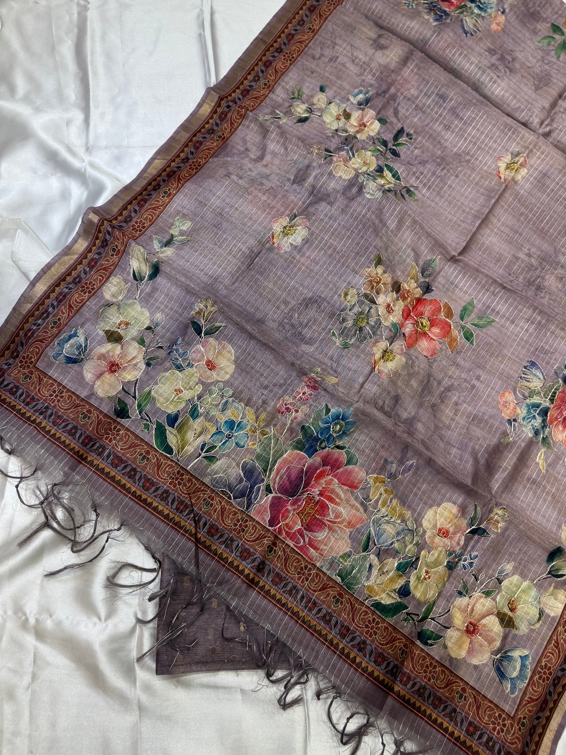 Designer chanderi silk with heavy duppata dress material (Pastel purple)