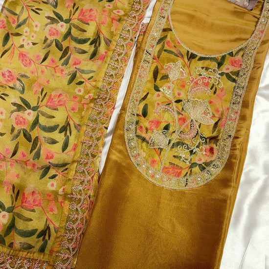 This Designer Crape Dress Material in a vibrant mustard shade brings a bold yet elegant look. The crape fabric offers a slightly textured finish with a smooth drape, making it perfect for both casual and formal wear. Its rich color and versatile design make it ideal for a variety of occasions, from festive events to evening gatherings.