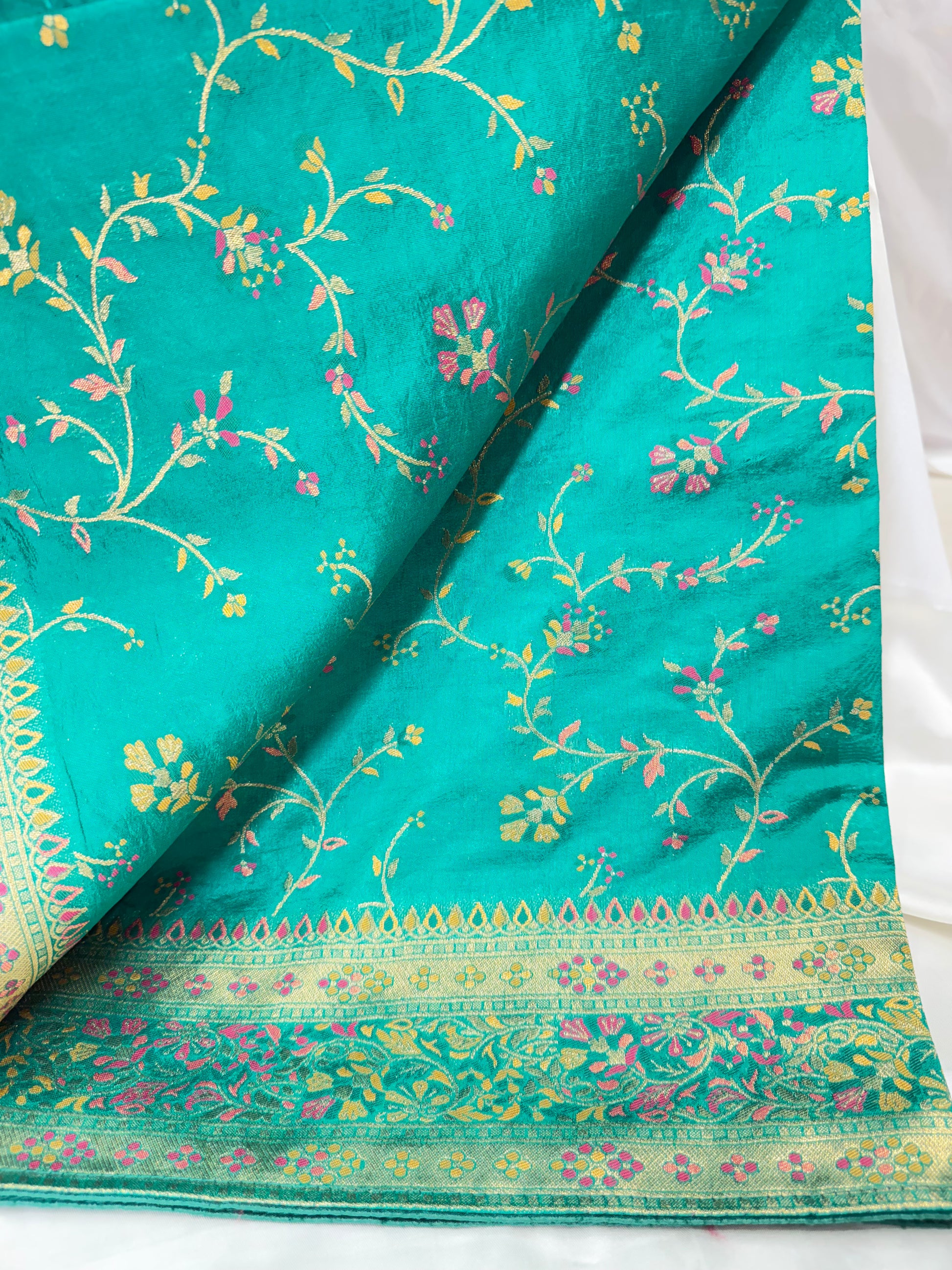 Step into timeless elegance with this beautiful Fancy Silk Saree featuring a classic Ikkat border in a refreshing sea shade. A perfect blend of tradition and contemporary style, this saree is a must-have for your festive wardrobe.