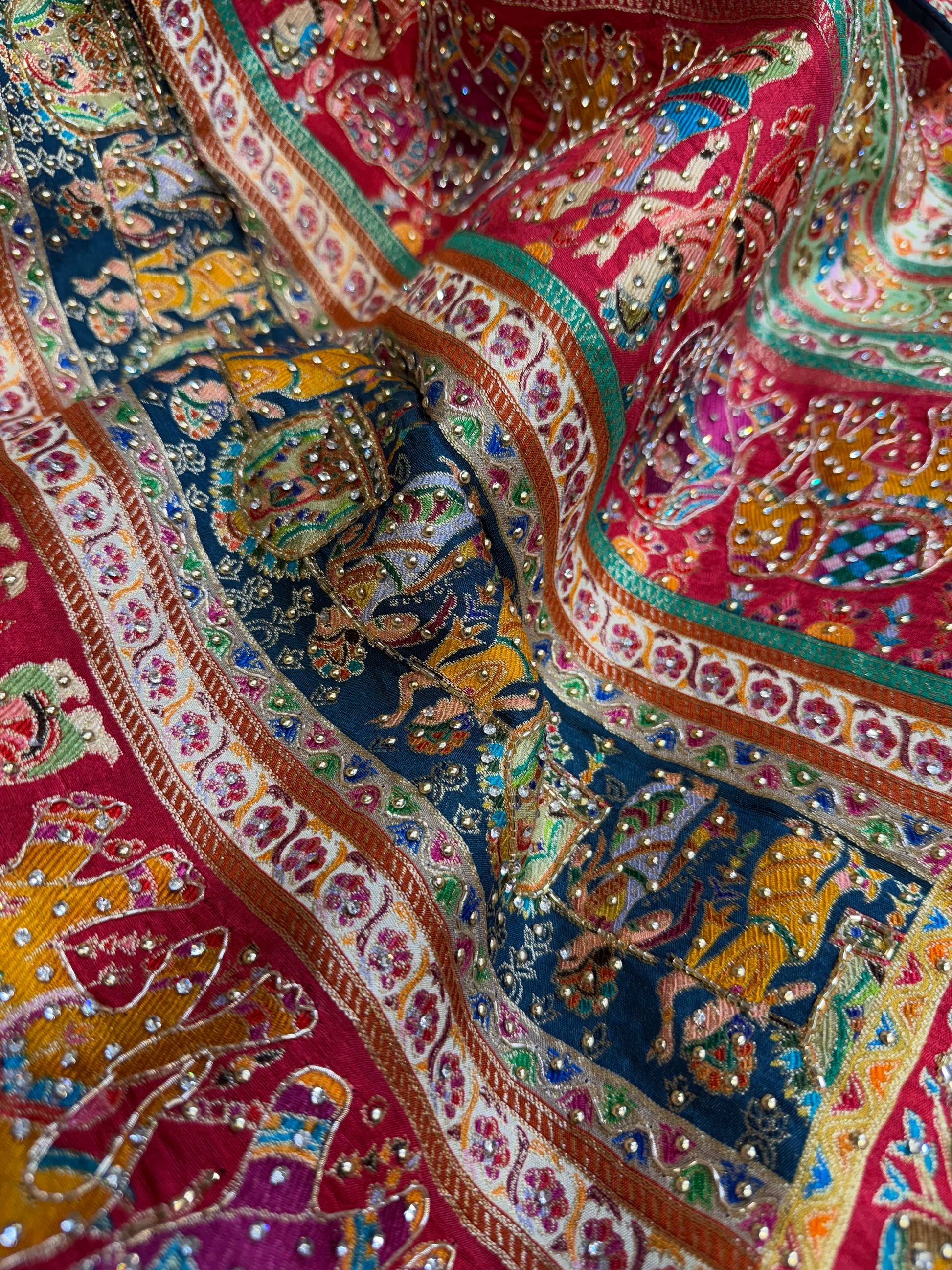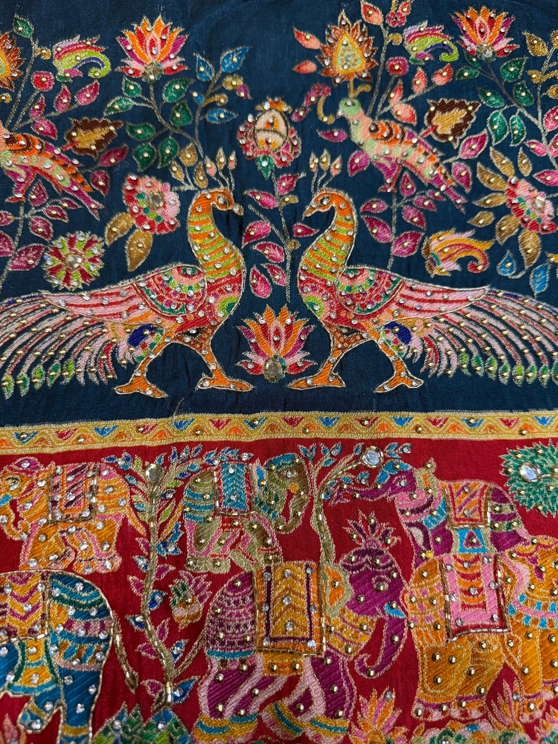Madhubani Embroidery Silk Saree (Navy Blue)