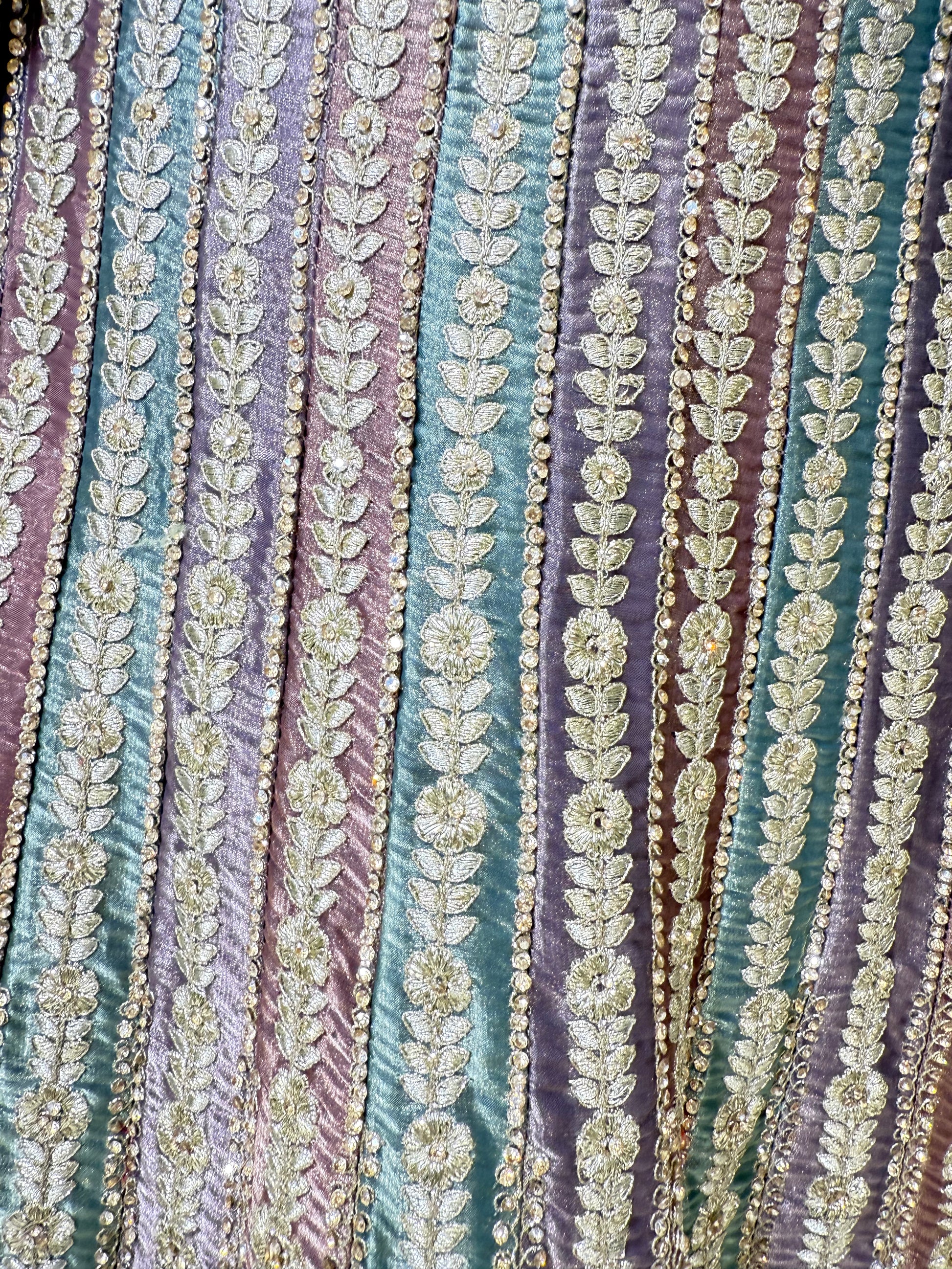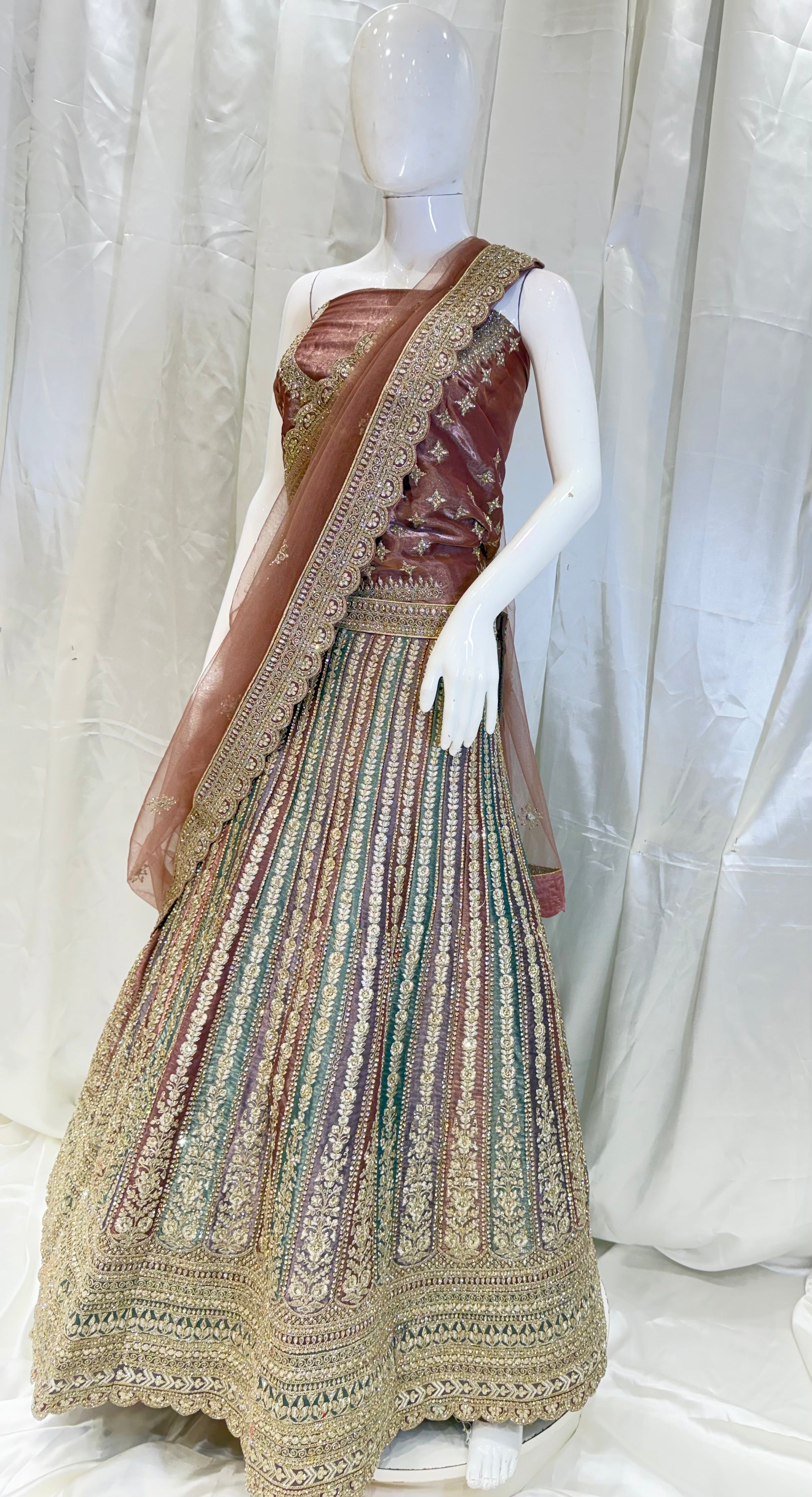Elegance meets contemporary style with this Multicolor Shade Lehenga in a graceful beige tone. The subtle gradient effect blends beautifully with vibrant hues, creating a soft yet striking look. Perfect for those seeking a sophisticated yet modern aesthetic, this lehenga is ideal for grand events and festive celebrations.