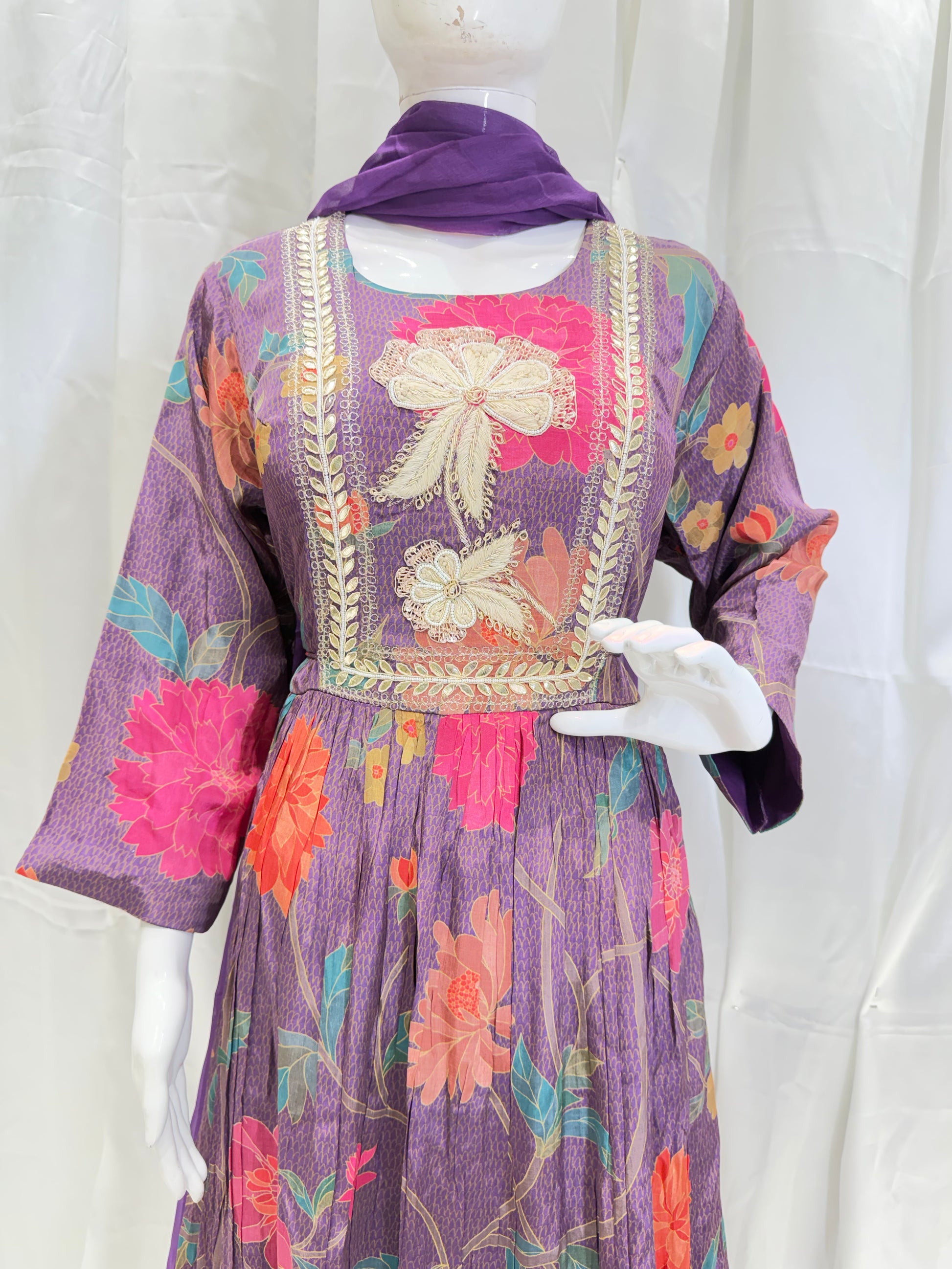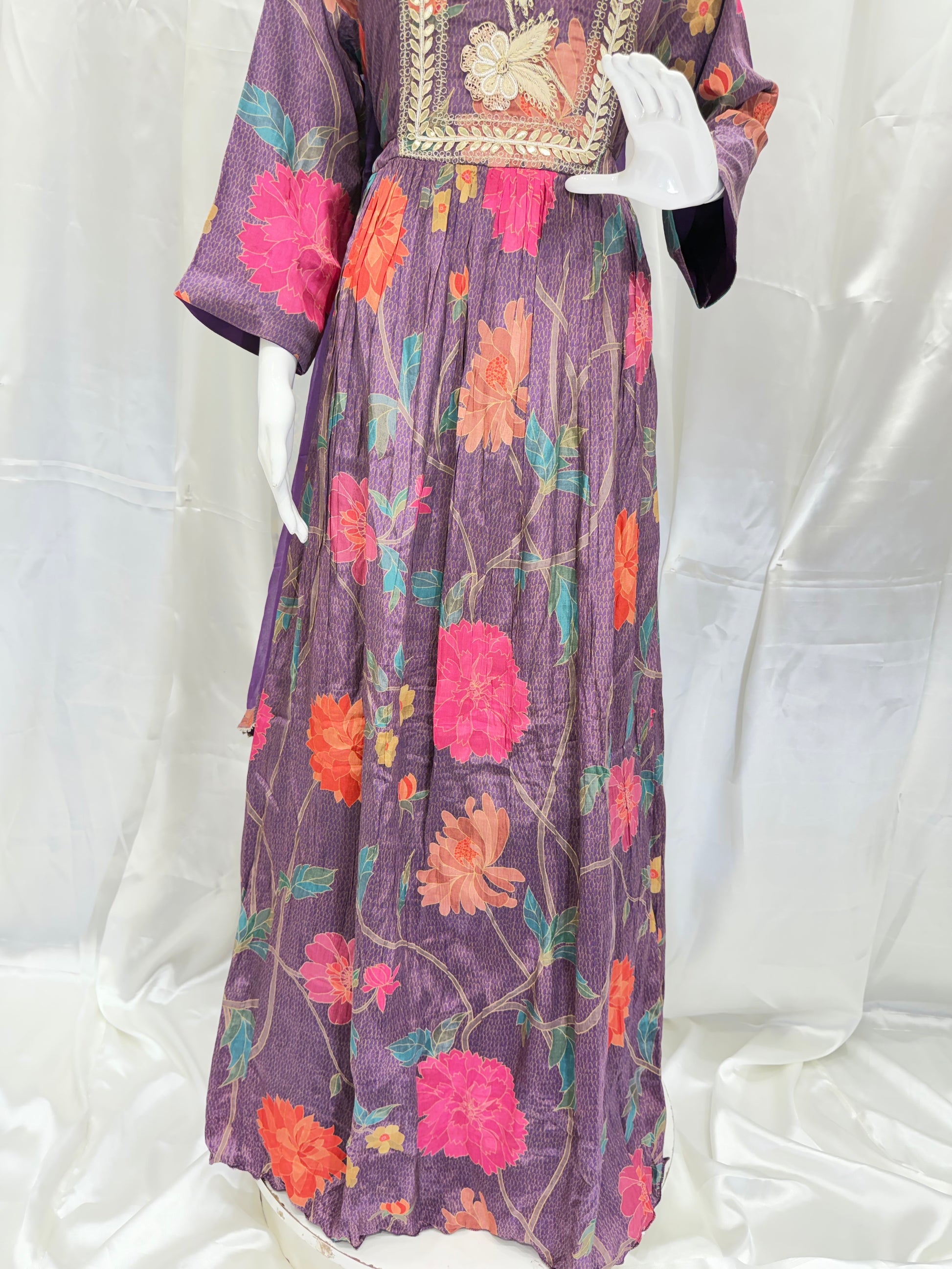 Soft Crepe Silk Digital Print Gown (Mauve)